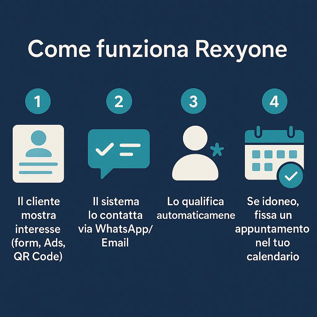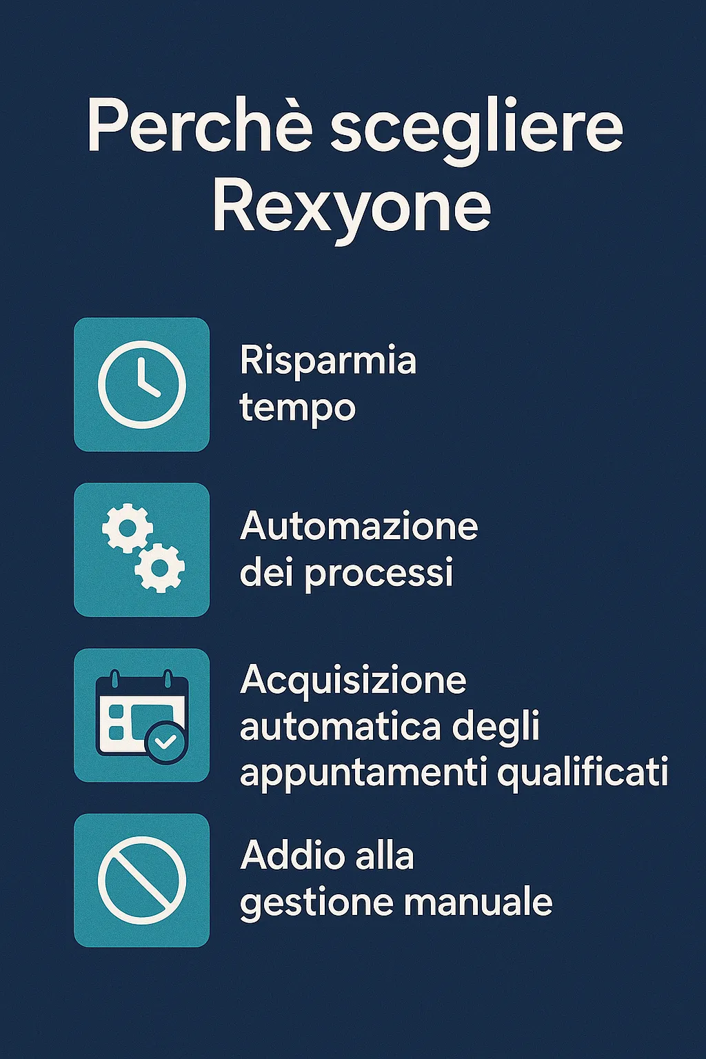 Le informazioni fornite su questa pagina hanno scopo puramente informativo e commerciale. I risultati ottenibili attraverso il sistema Rexyone possono variare da azienda ad azienda. Nessuna garanzia è implicita o esplicita.